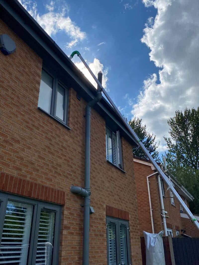 Here at Aqua Cleaning Services we use a powerful gutter vacuum that will take care of your gutters & downpipes safely from the ground!